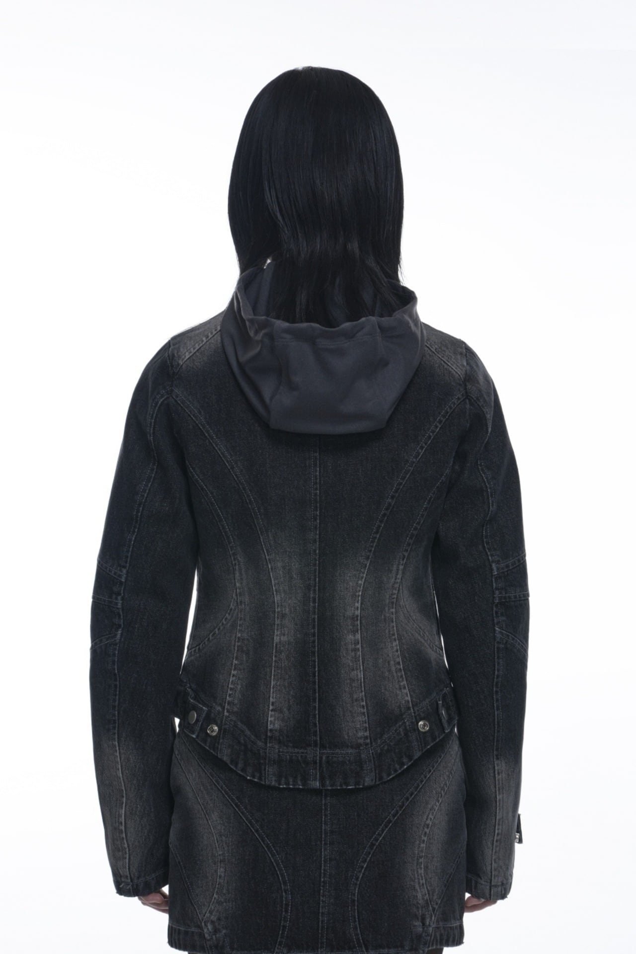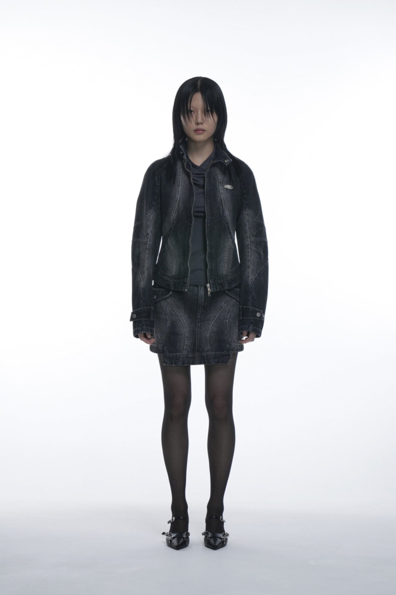- 切替ラインが際立つスリムフィットシルエットのウォッシングデニムジャケット